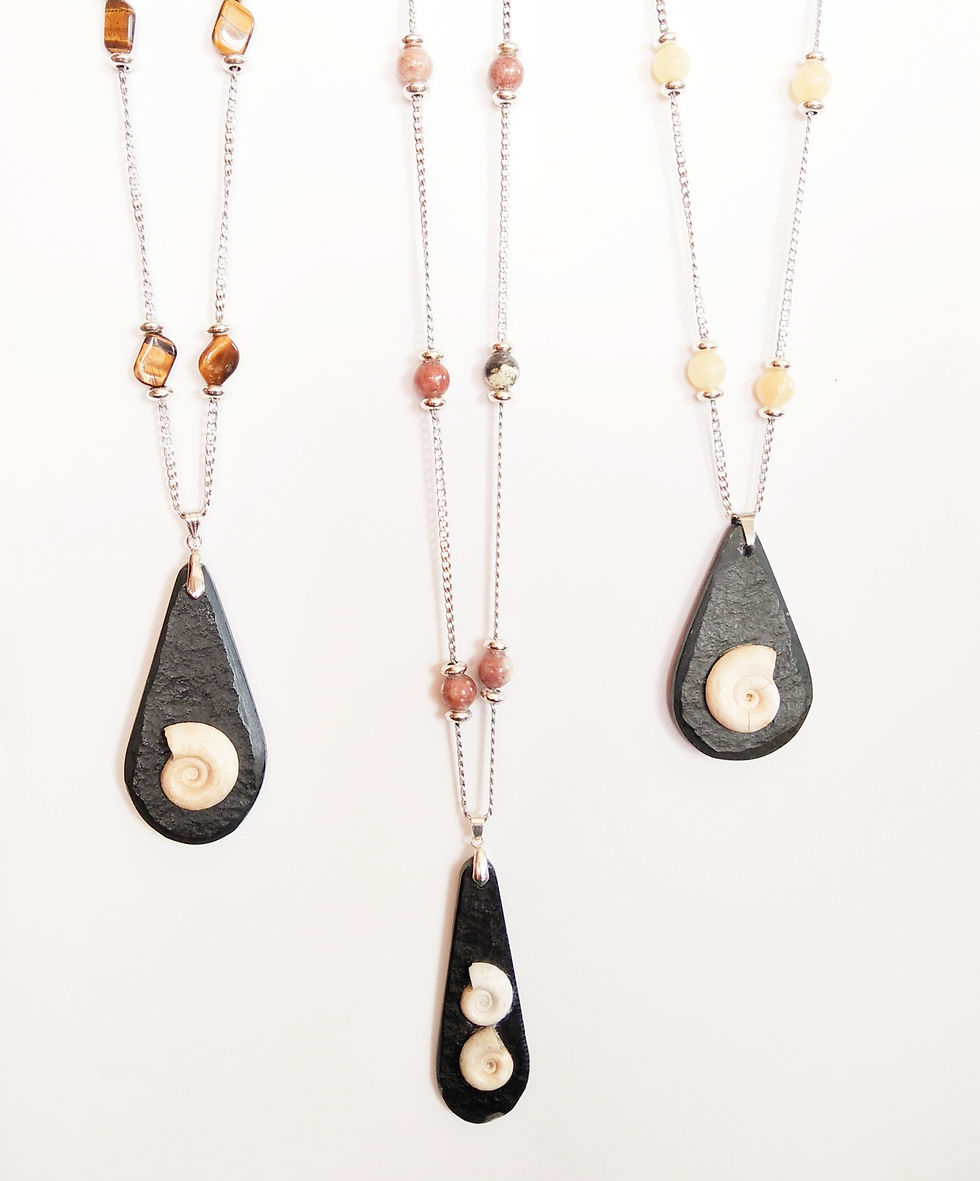 Nueva colección de collares, colgantes largos y gargantillas elaborados artesanalmente con nuestros fósiles y minerales más llamativos. Cada pieza que sale de nuestro taller es única y original, pensada para que resalte la belleza de cada piedra, para mujeres con estilo que huyen de lo convencional. Una vuelta a los orígenes.